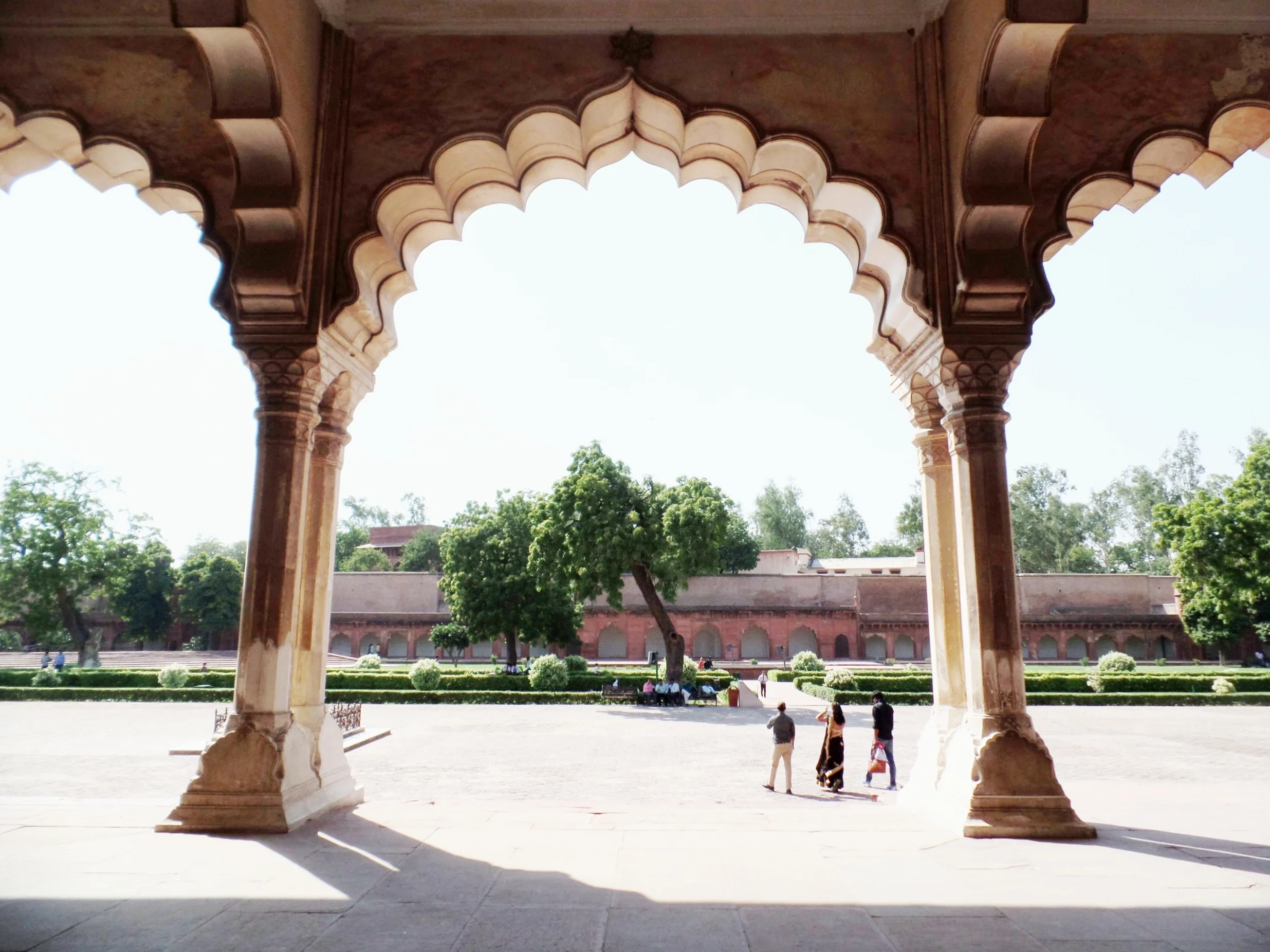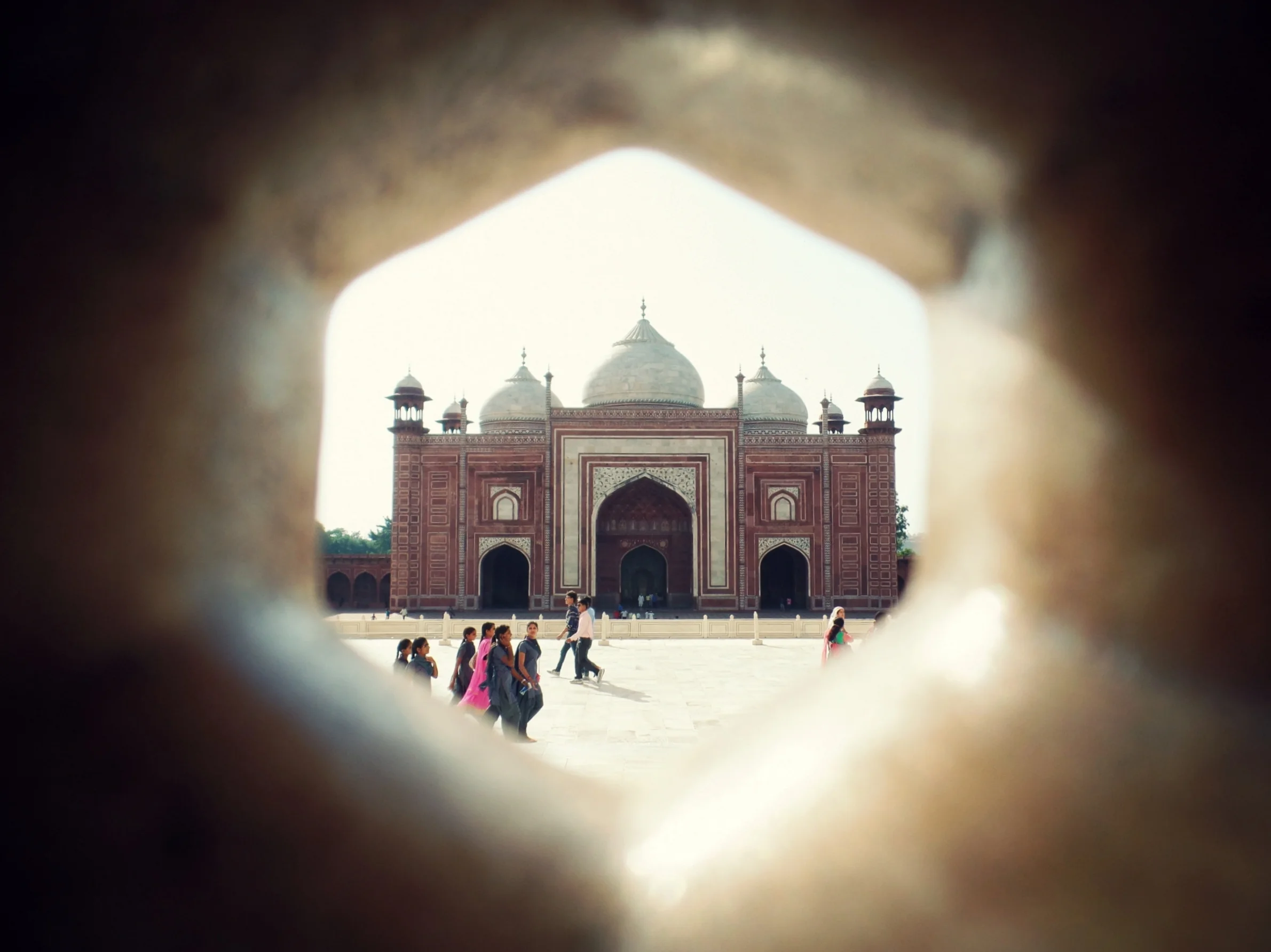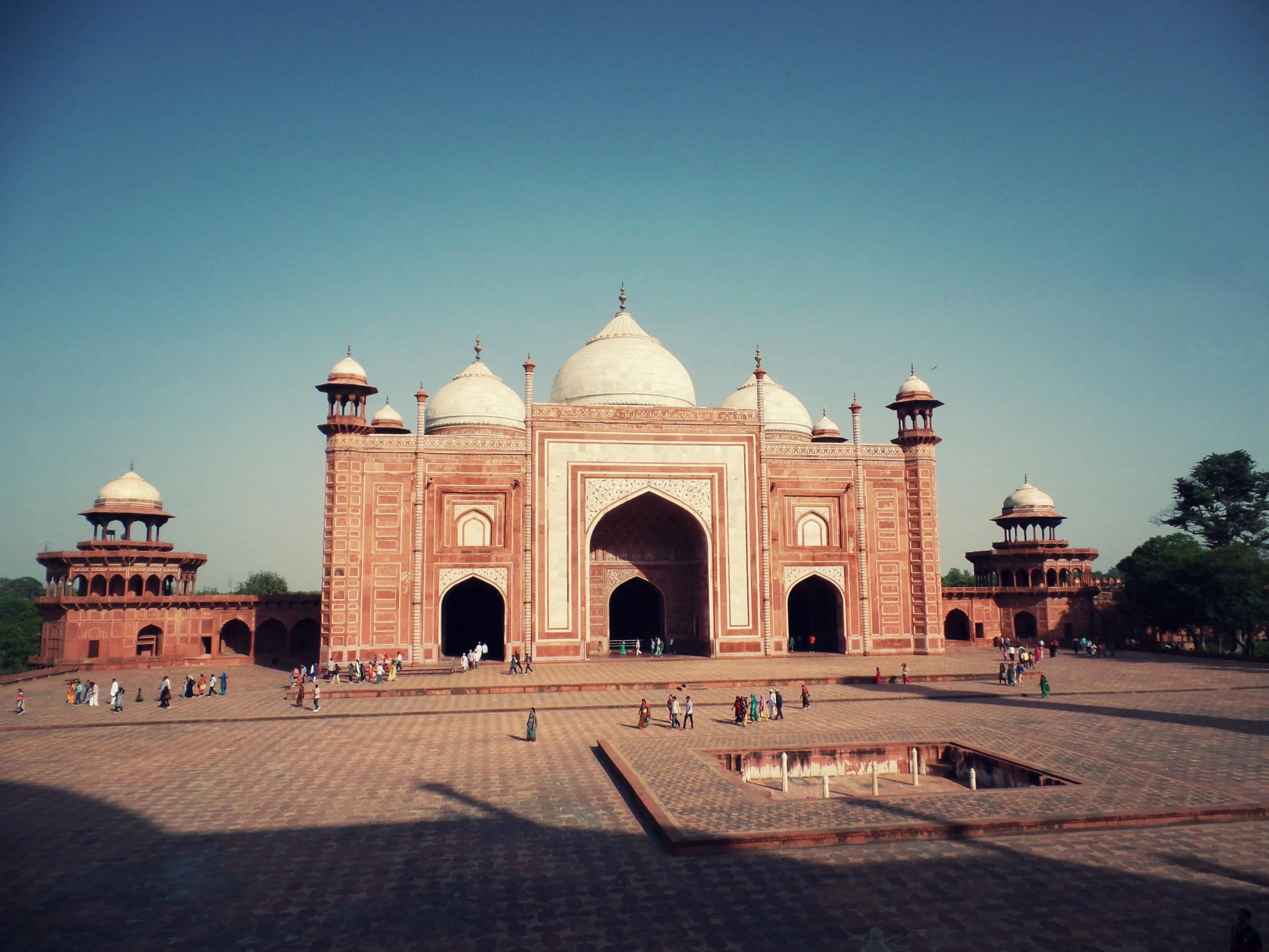 Looking towards the East gate from the shadow of the Taj Mahal.