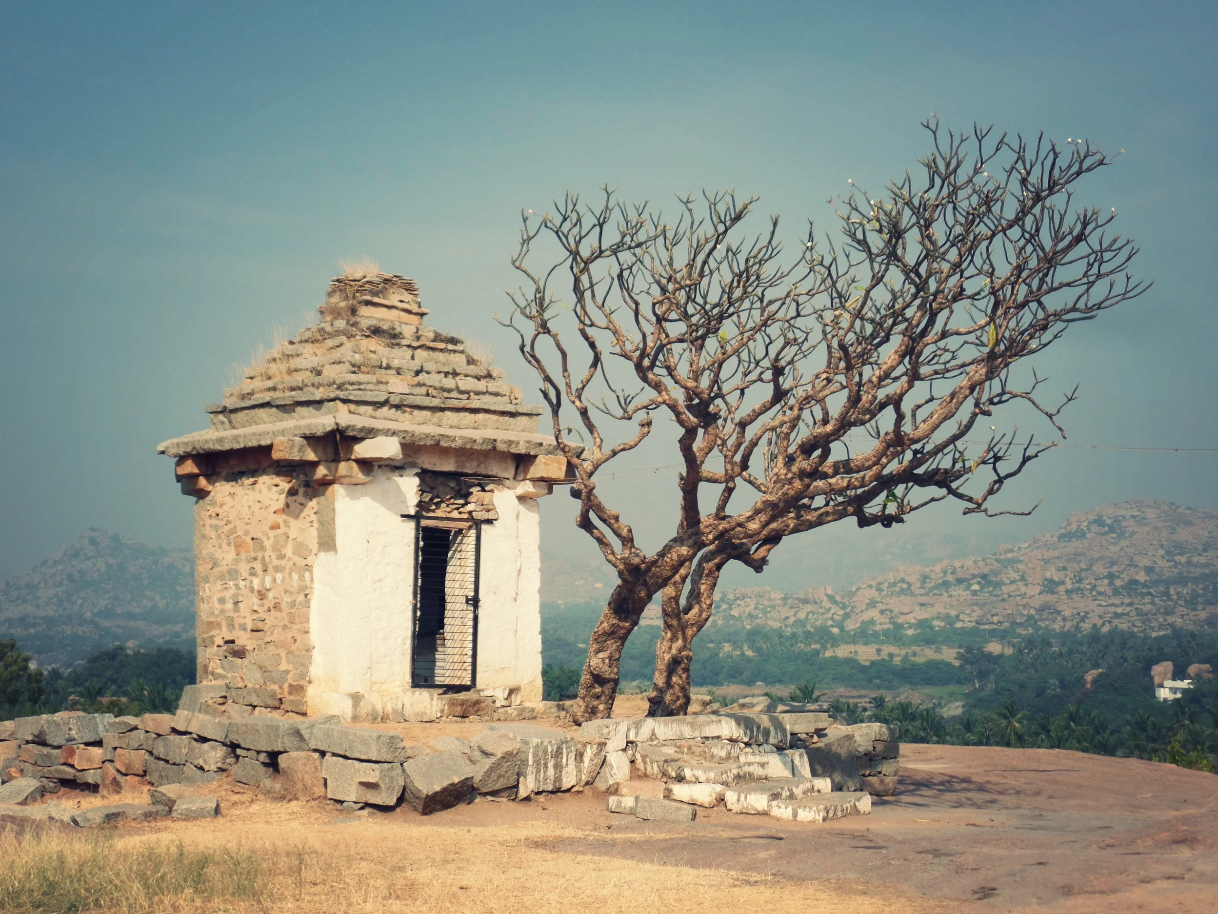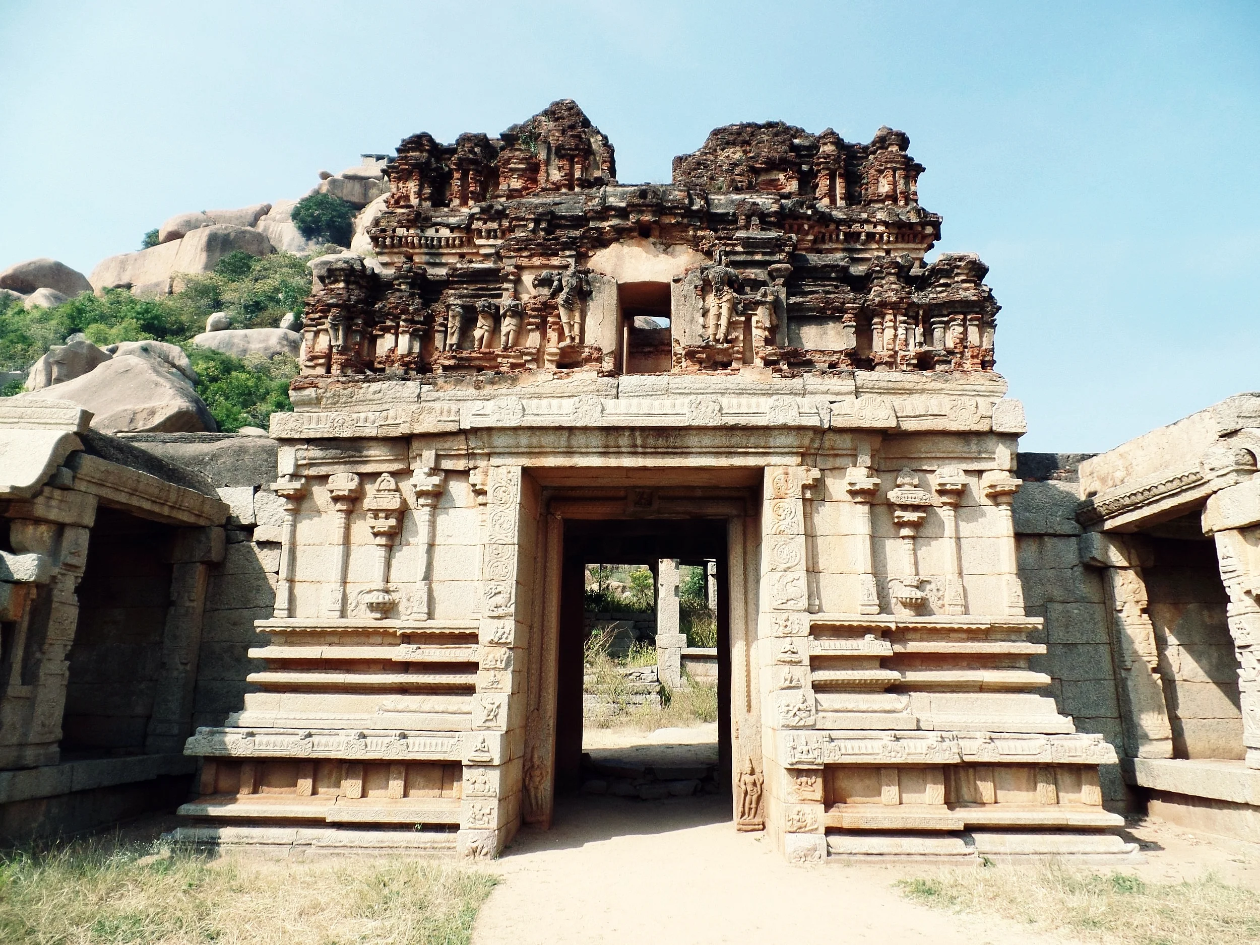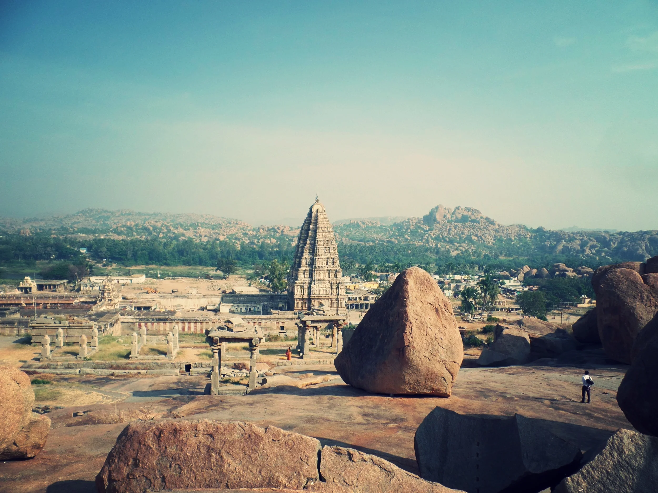 A view of Virupaksha Temple from a nearby hill.
