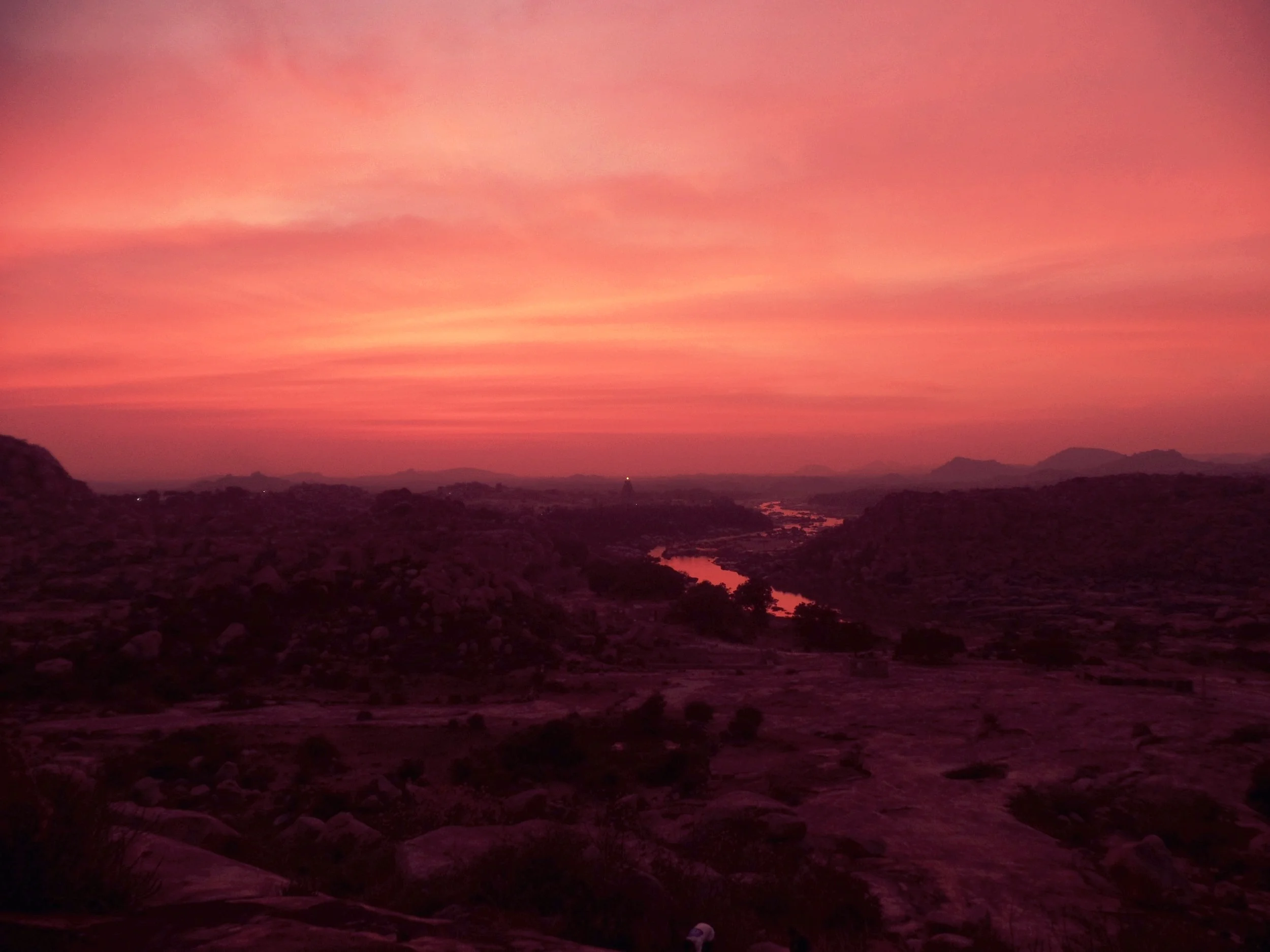 The backpacker paradise of Hampi has it all. Ancient ruins stand camouflaged amidst piles of boulders which look like the shards of shattered mountains. Monkeys lay in the shade in an effort to escape the scorching midday sun. The wind blows through plantation palms. At night the sun ignites the Tungabhadra River as it sets, turning the whole sky a flaming shade of pink.